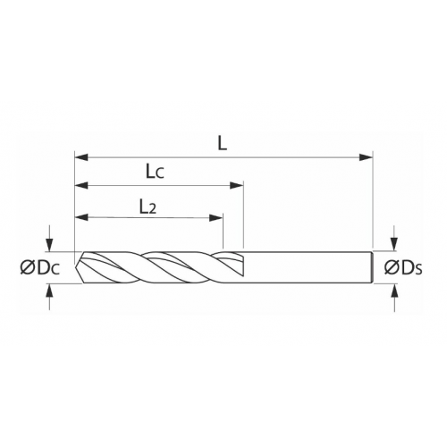 플루트 길이 LC = L2 + 1.5 × DC입니다.